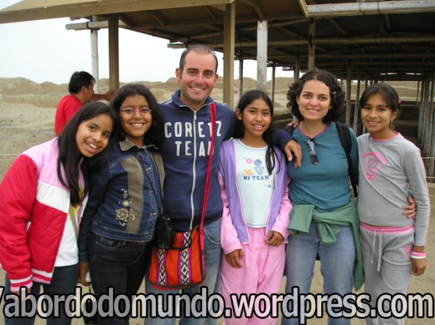 Nas ruínas, havia também um grupo de meninas peruanas em excursão escolar. Elas ficaram encantadas com meu grupo, provavelmente porque Frank, Chris e Christian são loiros de olhos claros, tipo físico diferente do delas. A professora estava explicando algo, mas elas não olhavam para o objeto e sim para o lado onde estávamos nós, algumas boquiabertas, hipnotizadas, outras cochichando entre si e apontando para nós.