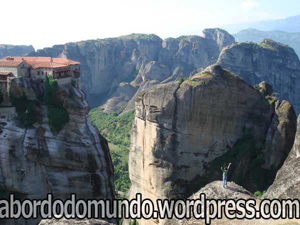 Um dos lugares mais inusitados a que fui é Meteora, na Grécia. Umas formações rochosas diferentes, nas quais foram construídos diversos monastérios em séculos passados. Hoje é possível visitar alguns dos restantes enquanto se passeia por esta paisagem de tirar o fôlego. O nome meteoros significa em grego “suspenso no ar”. Para entender o porquê, compartilho as fotos.