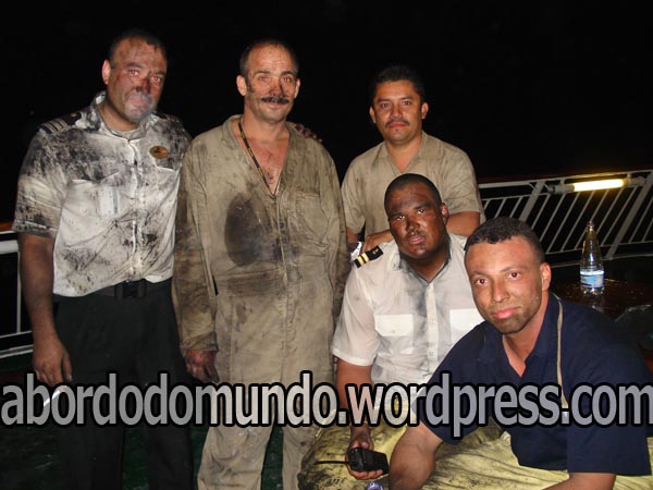 Para treinar a tripulação para situações de perigo, toda semana tem simulação de emergência a bordo. Temos que estar em nossas cabines e seguir os procedimentos que vão sendo falados pelo alto-falante. Quando finalmente nos reunimos todos nas estações de emergência (passo prévio à evacuação nos botes), alguns oficiais passam verificando o conhecimento dos tripulantes sobre o que fazer nestes casos, os equipamentos de segurança disponíveis no navio, etc… Perguntam em tom ameaçador: o que você faz se escuta tal código? Qual extintor você usa em caso de fogo elétrico?