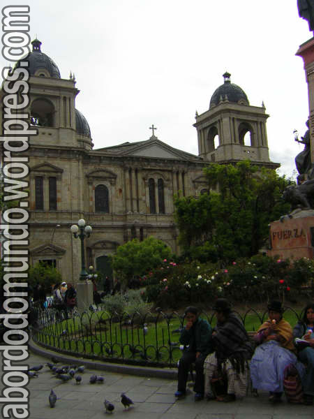 La Paz é diferente de tudo quanto tinha visto. Tive o privilegio de chegar de ônibus e a cidade, que é num vale (a mais de 3 mil metros de altitude), foi se abrindo aos meus pés, de maneira incrível! As casas parecem estar uma em cima das outras. A cordilheira real, com picos enormes e nevados, rodeia a cidade. Umas rochas arenosas se interpõem no meio da cidade, com pontas que lembram catedrais góticas. Você nunca anda reto em La Paz: está ou subindo ou descendo. Mole para uma belo-horizontina, vocês podem pensar. Mas, naquela altitude, eu dava dois passos morro acima e parecia que tinha corrido uma maratona, de tão cansada.