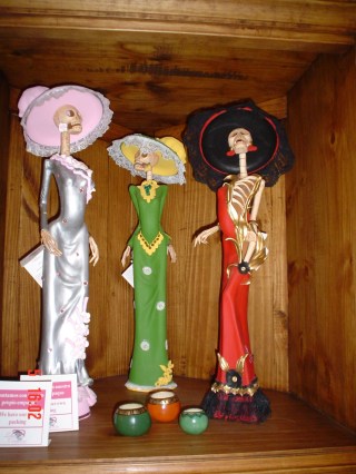 No México, um enfeite comum é as Catrinas: esqueletos vestidos como mulheres chiques. É para mostrar que na morte somos todos iguais, não importam os bens materiais.