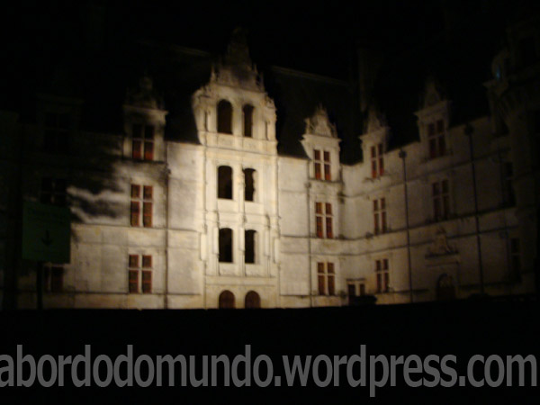 Aizay-le-rideu. Este foi uma visita noturna, Fazem um longo show pelos jardins, que foi uma das coisas mais bizarras que já vi na minha vida, sem pé nem cabeça e com pouca graça.