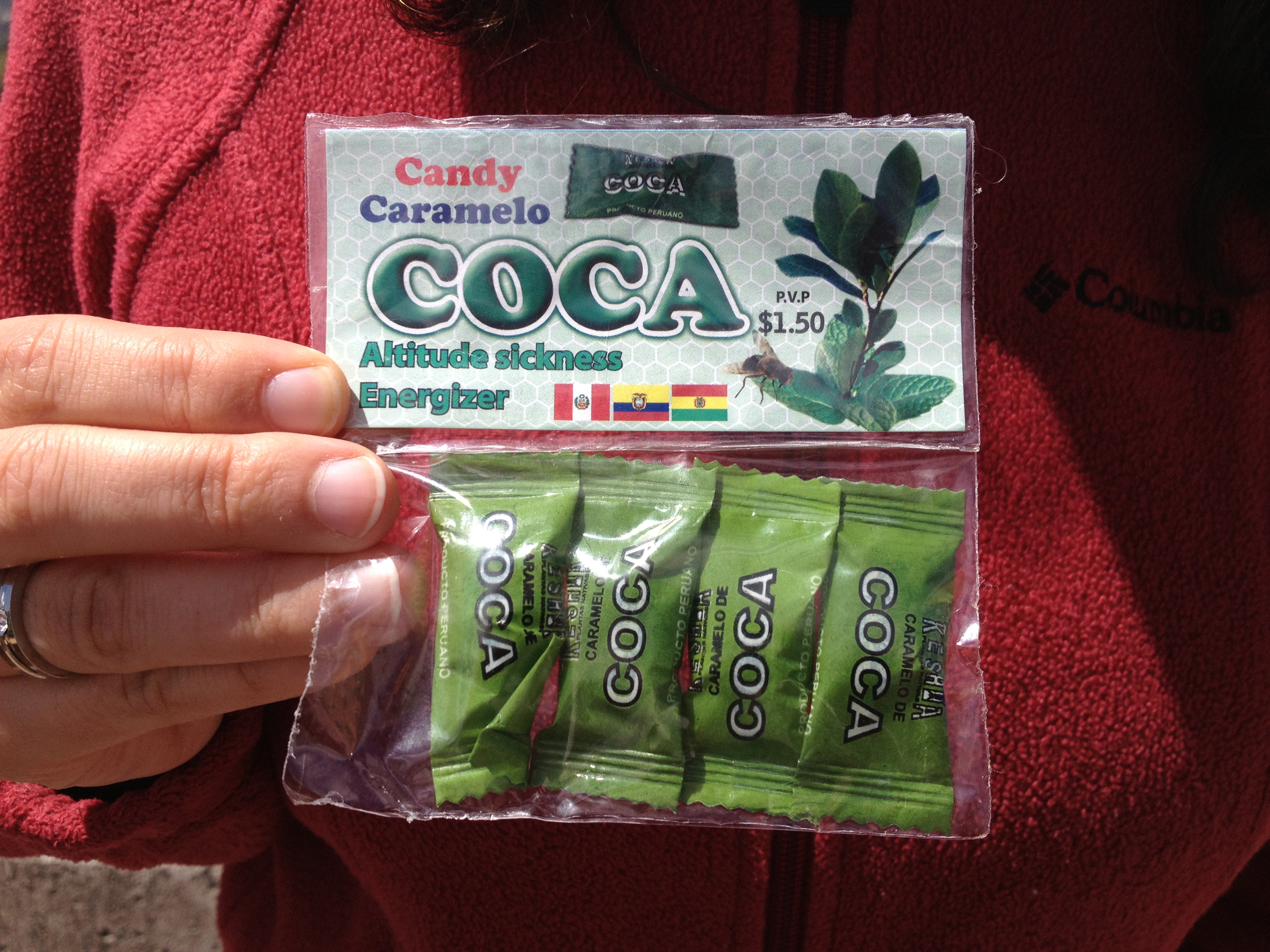 Eu trouxe do Equador 2 kits de balinhas de coca. Não é droga, não é ilegal, não traz alucinação nem nada. Estas balas ajudam com o soroche, o mal da altitude. Para entender melhor, veja o videopost Curiosidades do Equador 4: o mal da altitude.