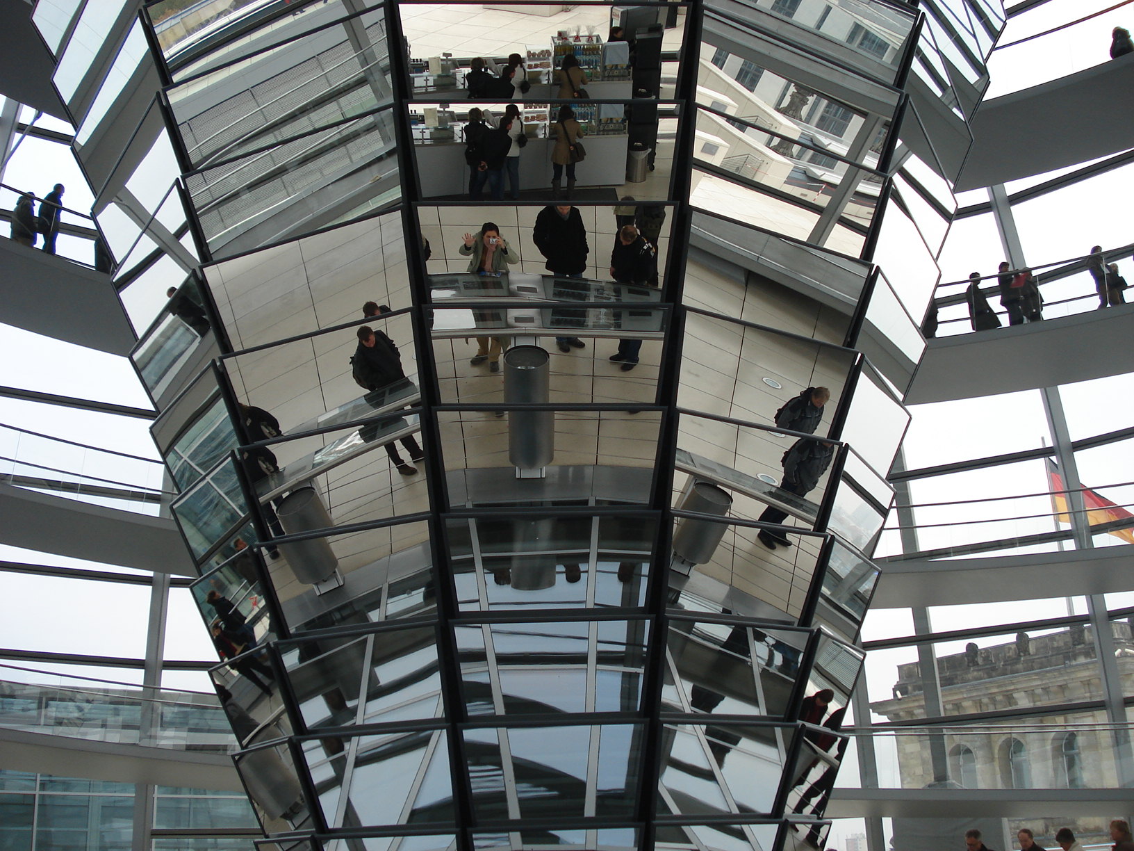 Eu estava em Berlim com um amigo alemão. Fomos a um edifício muito bonito, o Sony Center, com uma arquitetura moderna e interessante. Durante a visita eu quis ir ao banheiro. O banheiro masculino era ao lado do feminino, mas havia somente uma fila. Longa. Uma senhora que trabalhava na limpeza perguntava alguma coisa em alemão sempre que alguém chegava na frente da fila. Após a resposta, ela direcionava a pessoa para um banheiro ou outro. Ou seja, algumas mulheres podiam entrar na parte das cabines do banheiro masculino também (o mictório ficava no fundo). Isso é normal na Europa, banheiros mistos. O problema é que eu, que não falo nada de alemão, desconfiei de que, em nome da rapidez, aquela senhora estava perguntando algo indiscreto.