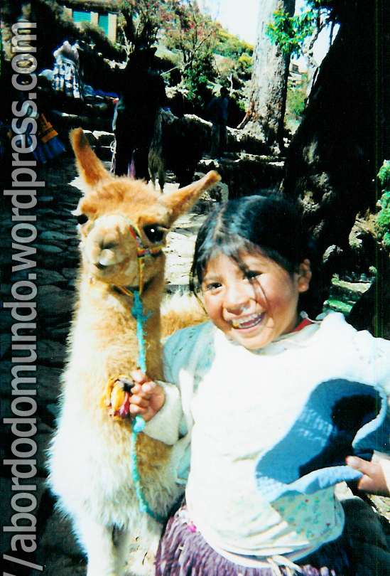 Não tenho foto do macaquinho, mas segue um animal boliviano: uma baby llama… Na Isla del sol, Bolivia.