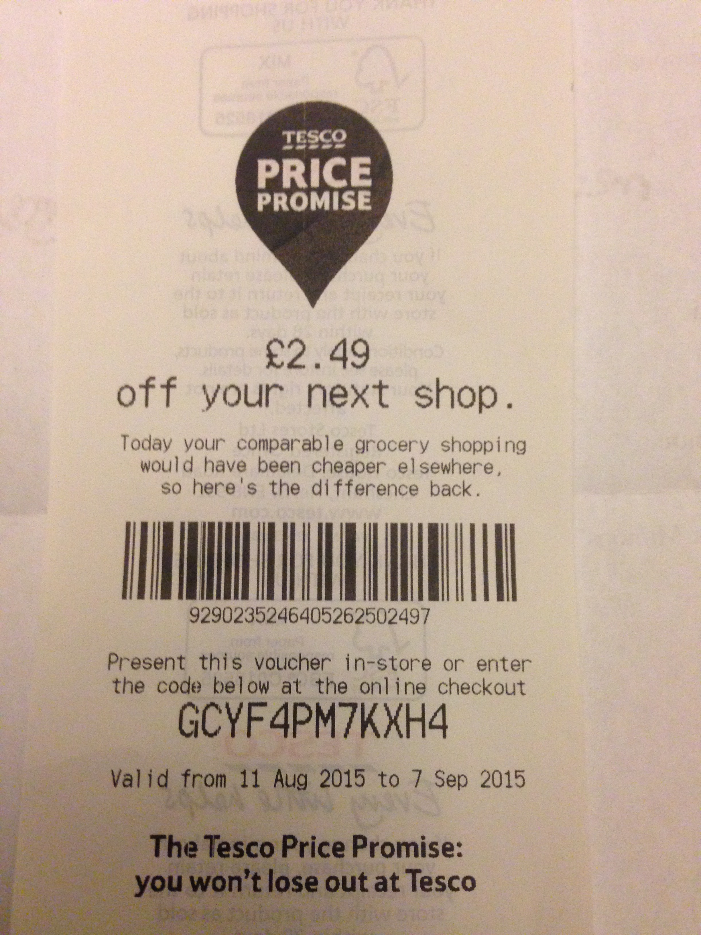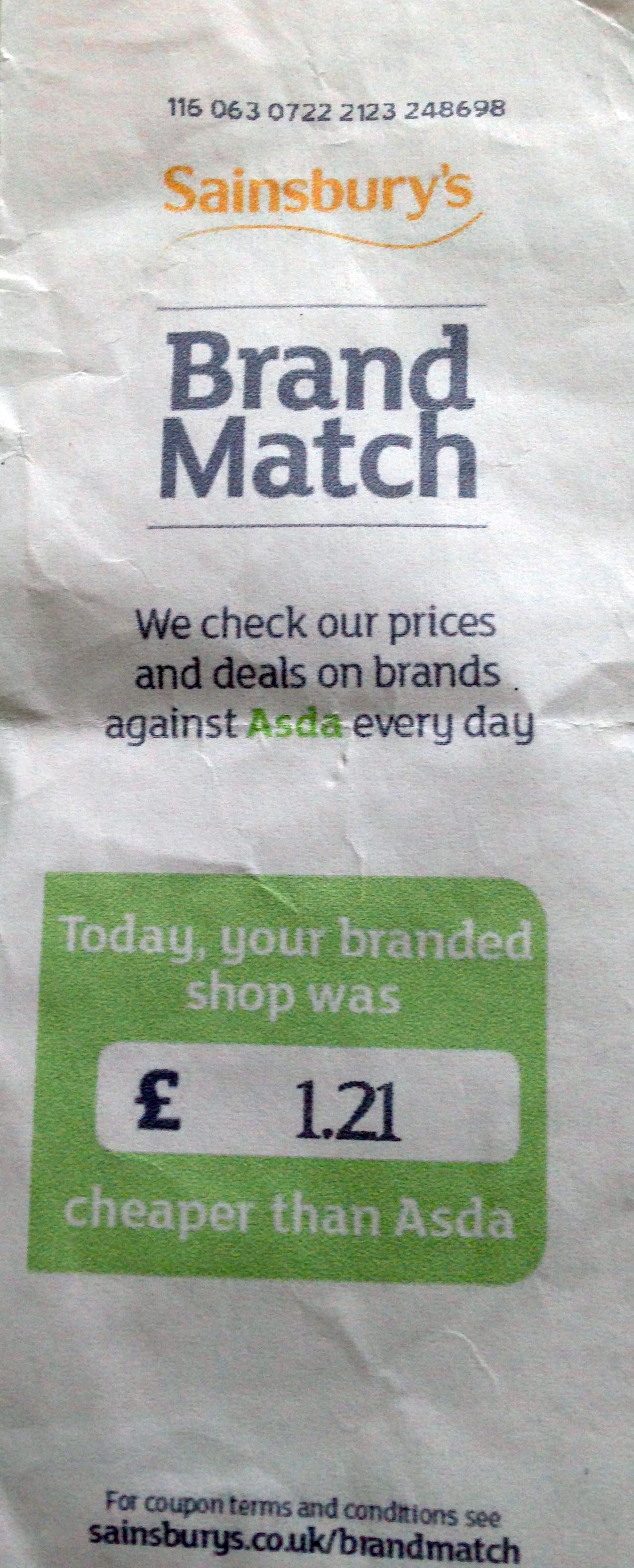 - Se você tivesse comprado no supermercado tal hoje, sua compra teria sido X libras mais barata. Portanto, este voucher vale um desconto de X para sua próxima compra conosco.