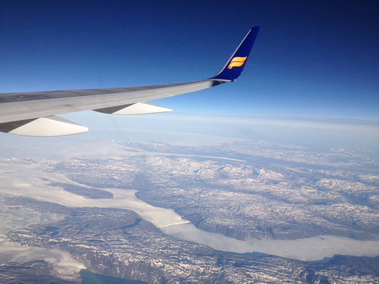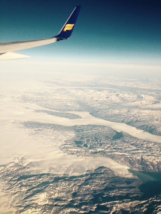 - Se você pegar o voo saindo dos Estados Unidos, pegue um assento na janela. Eu sempre prefiro corredor, mas dessa vez abri mão. O voo passa por cima da Groelândia. É impressionante ver a paisagem lá de cima, além de entender melhor as aulas de geografia. Dá para ver o tapete branco de neve cobrindo a ilha. Aí dá para ver a neve se transformando em glaciares, que se liquefazem em rios. Nos rios, emendando com o mar, os icebergs, pequenos pontos brancos sobre a água. Lindo (e diferente) demais.