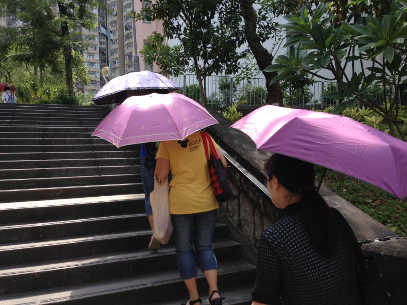 3) Quanta gente! Muita gente nas ruas, no metrô, em todos os lugares. A densidade populacional daqui é uma das mais altas do mundo: 6.500 pessoas por km2. Ok, São Paulo tem mais de 7000 por km2. Acontece que São Paulo tem uma área de quase 8000 km2 e Hong Kong tem apenas 1100 km2, dos quais 70% é área verde ou praia. É tanta gente junta que para andar na rua muitas vezes tenho a sensação de que estou em um videogame, tendo que desviar das pessoas, tentando não derrubar ninguém nem ser derrubada.