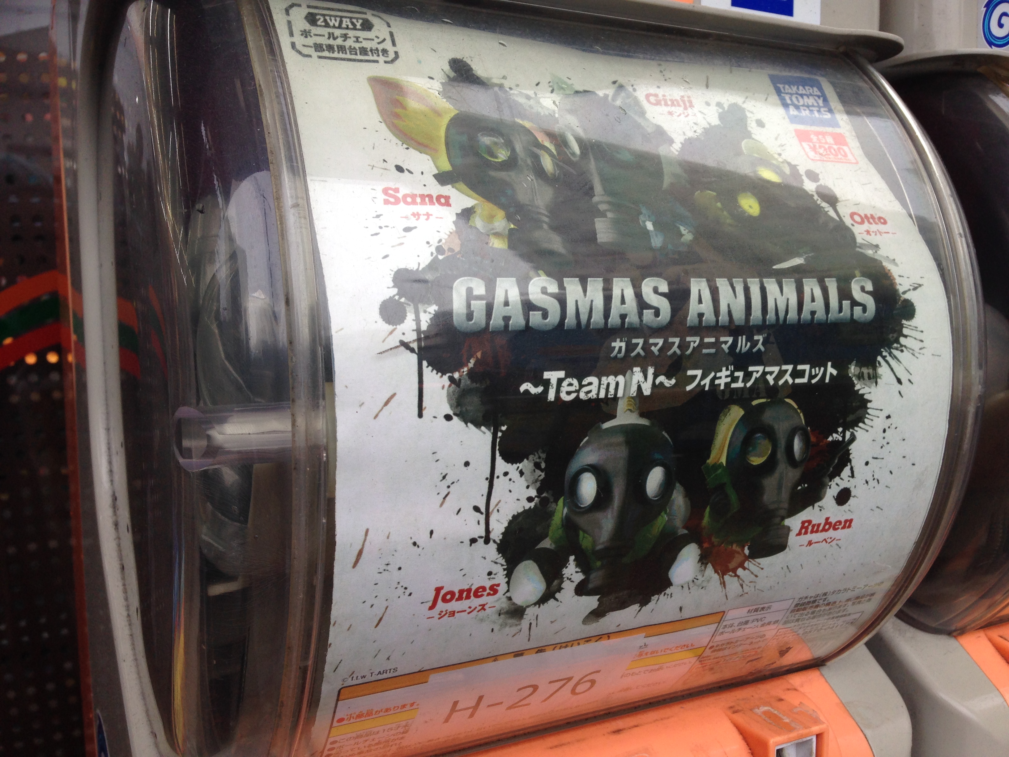 Aqui é cheio daquelas máquinas em que se coloca moeda e cai uma bala ou brinquedinho. Mas alguns dos brinquedinhos são demasiado exóticos para meu gosto.
