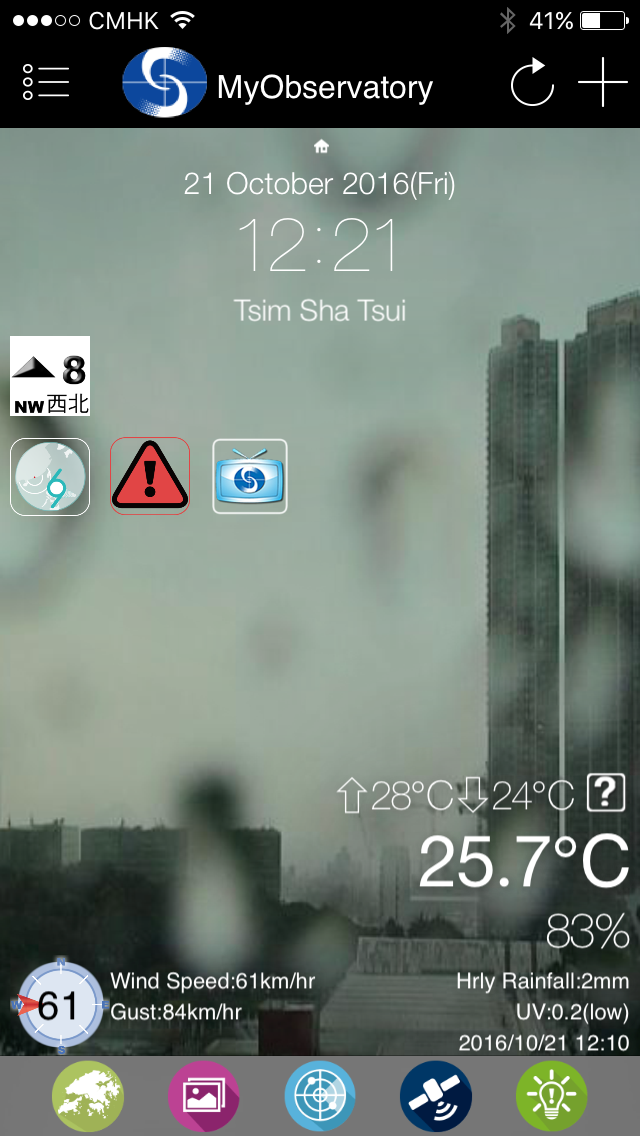 No início da semana tivemos o furacão Sarika, que ocasionou fortes chuvas e ventos e alagamentos em partes da cidade. Já hoje está passando bem perto daqui o Furacão Haima, que passou primeiro nas Filipinas, e arrasou grande parte, e por isso vai chegar com intensidade reduzida aqui. Numa escala que vai até 5, o Haima atingiu as Filipinas com intensidade 4 e Hong Kong com 2.