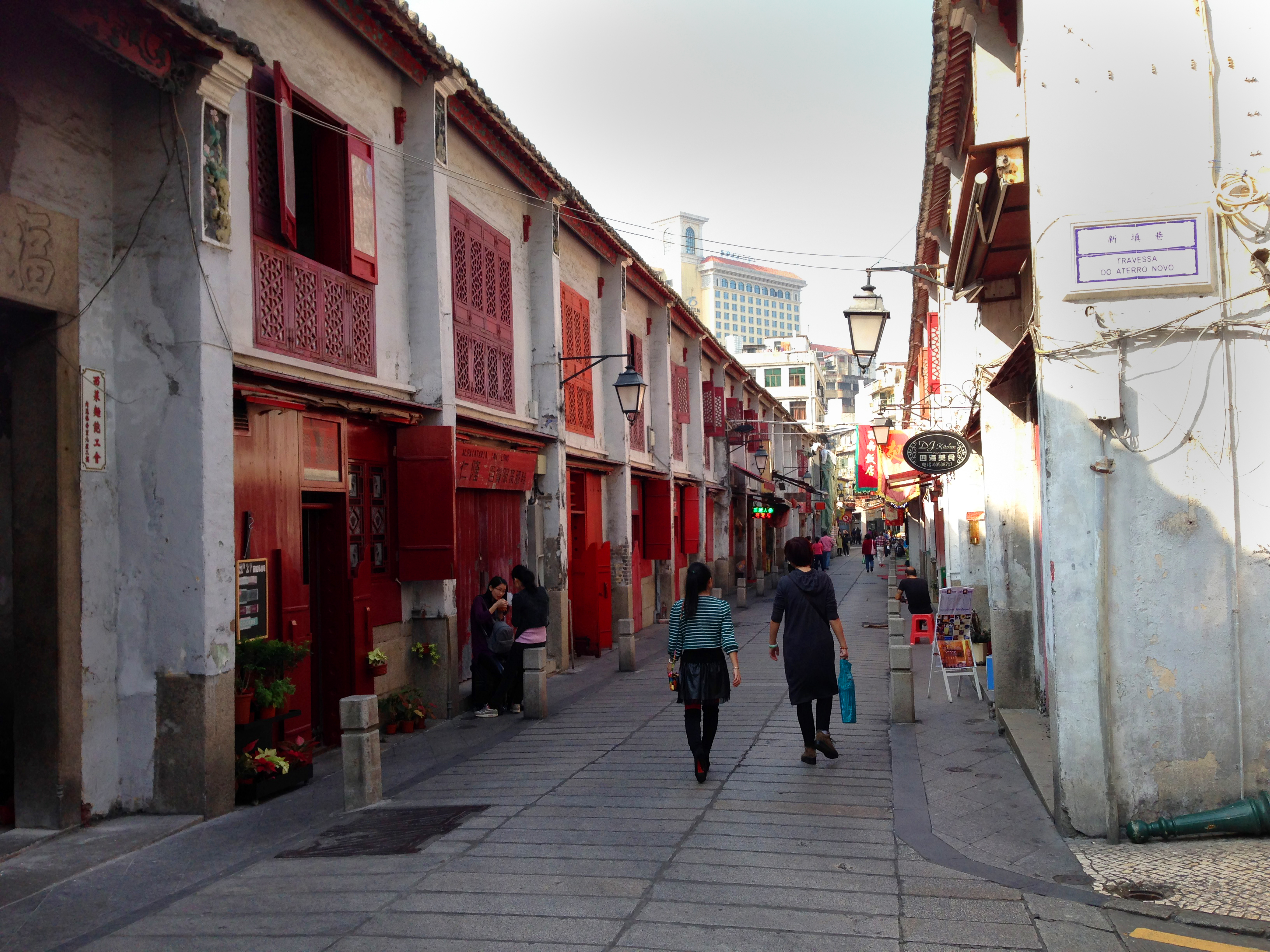Depois de meses em Hong Kong, eu tinha esperança de falar minha língua materna ao vivo com alguém, mas não foi possível. As pessoas que eu encontrei no comércio e atrações turísticas, mal falavam inglês, quanto mais português! Falei “obrigada” algumas vezes, que talvez seja a palavra mais básica de um idioma, mas nem isso eles entendiam. Apesar disso, os nomes de ruas e lugares em português facilitam para nós.